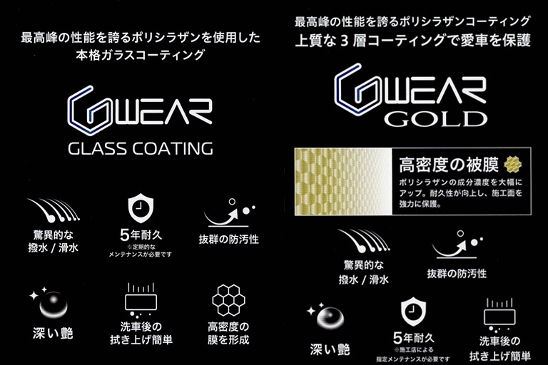 ガラスコーティングとは、ガラス成分含有量が多く強固な被膜を形成するコーティングです。コーティングの中でも特に性能が高く、耐熱性や耐久性に秀でています。また、ガラス被膜で覆うため、窓ガラスのような美しさを放ちます。